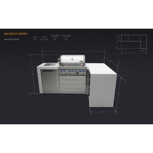 Mont Alpi 400 Deluxe BBQ Grill Island with L-Shape - MAi400-D90C
