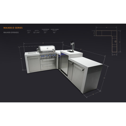 Mont Alpi 400 Deluxe BBQ Grill Island with L-Shape & Kegerator - MAi400-D90KEG