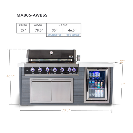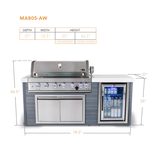 Mont Alpi Artwood 6-Burner Stainless Steel BBQ Grill Island - MA805-AW