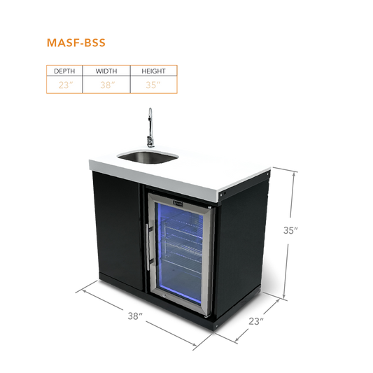 Mont Alpi Black Stainless Steel Beverage Center with 90 Degree Corner and Fridge Cabinet - MA-BEVBSS90C