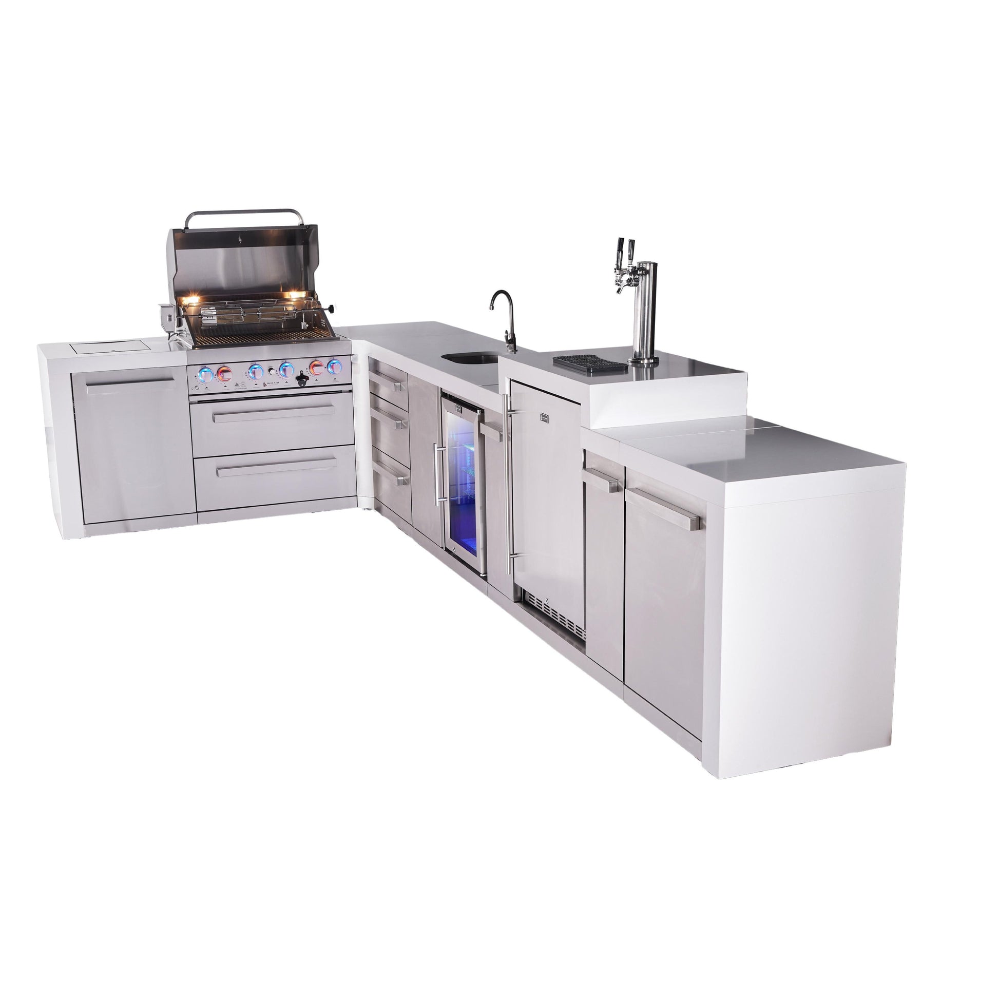 Mont Alpi 400 Deluxe BBQ Grill Island with L-Shape, Beverage Center, Kegerator & Extra Drawer Storage - MAi400-D90KEGBEVDR