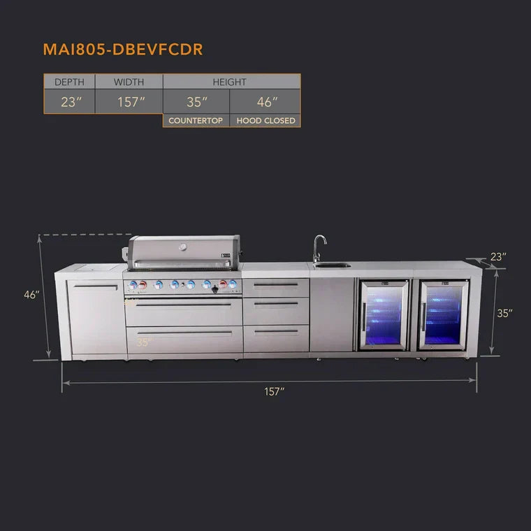 Mont Alpi 805 Deluxe BBQ Grill Island with Beverage Center, Extra Drawer Storage & Fridge - MAi805-DBEVFCDR