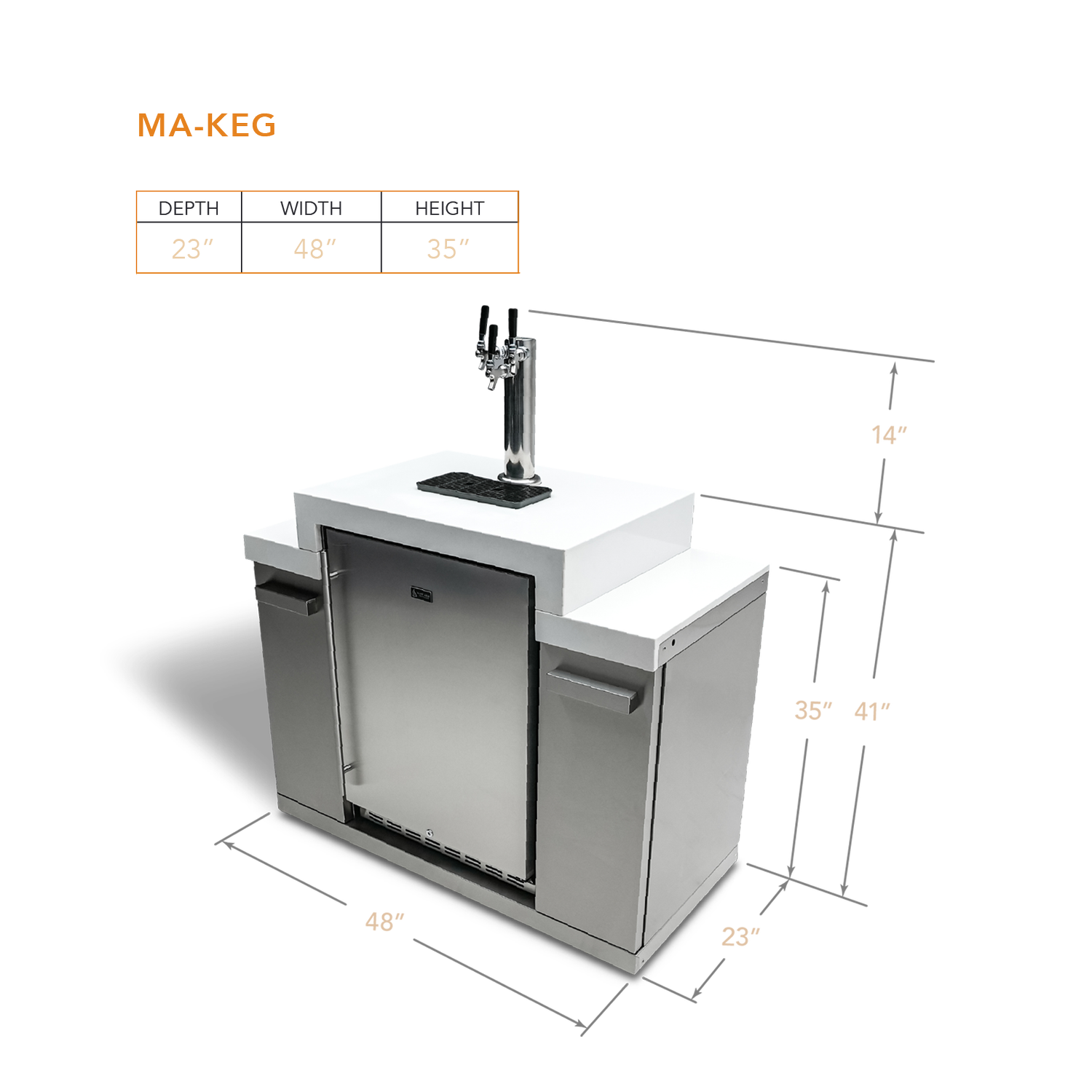 This unit is the perfect addition to a Mont Alpi BBQ island or as a stand alone keg-center.