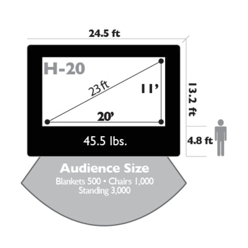 Home Series of inflatable movie screens come in the following widths: 9, 12, 16, and 20 feet.